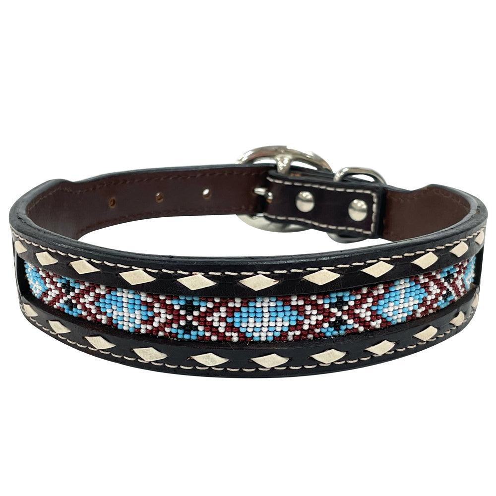 BAR H EQUINE Floral Beaded Symmetry Designs Western Leather Dog Collar