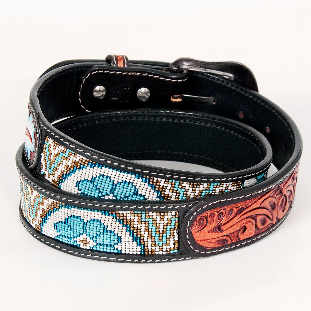Bar H Equine Hand Carved Western Leather Belt Men Women Beaded