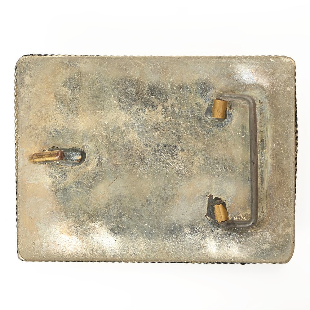 American Darling Belt Buckle Engraved Brass Turquoise Rhinestone Scrollwork