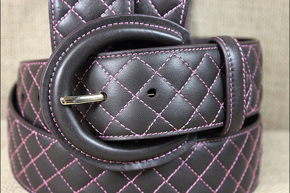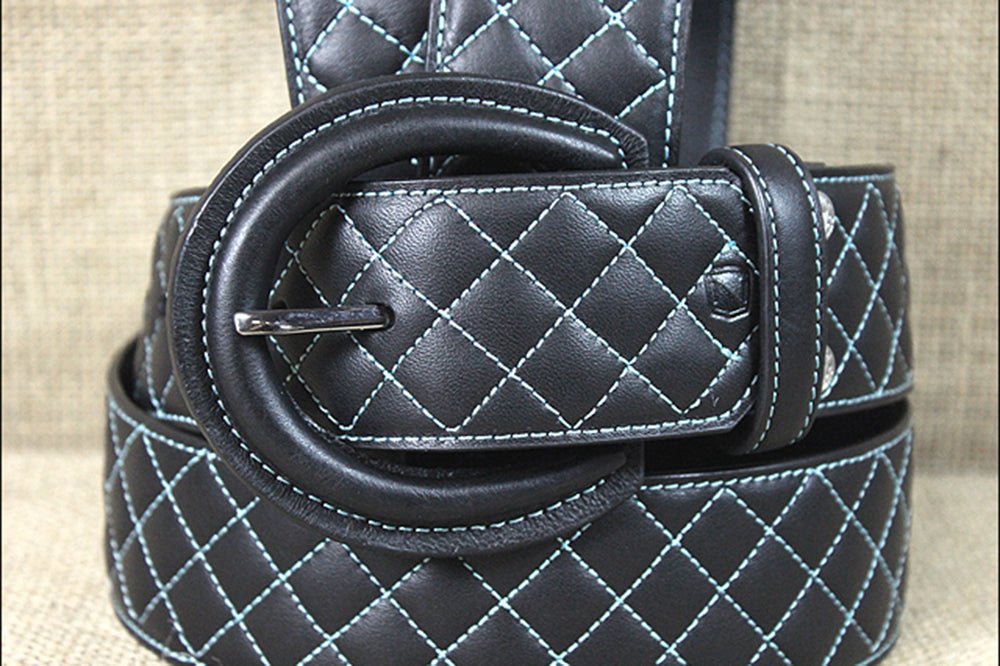 Noble Equestrian Classic Quilted Belt 2" Wide Full Grain Leather Contrast Stitching & Brass Hardware
